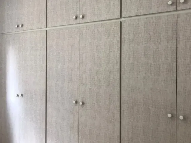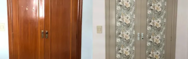Restauración de puertas de armario con pintura y papel pintado