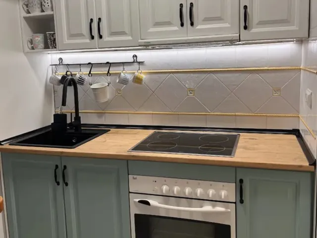 8-) Cambio de color de muebles de cocina, el antes y el después Bricolador4667695 consiguió un gran cambio en su cocina con una renovación sencilla e impactante. Lijó los muebles, aplicó imprimación y pintó tres capas con rodillo y brocha para los detalles. Gracias a los consejos de la sección de pinturas de Leroy Merlin, logró un acabado perfecto. ¡Un cambio total con creatividad y buen asesoramiento!