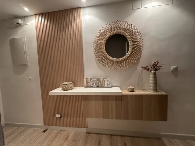 Al mudarse a su nueva casa, @Juanvi se encontró con un verdadero caos visual en el recibidor: tres tapas de contadores, telefonillo, sensores y más elementos desordenados en la misma pared. Para solucionarlo, optó por una estructura tipo armario revestida con friso de palillería, logrando ocultar todos esos elementos sin perder funcionalidad. El resultado es un espacio mucho más limpio y moderno.Si tu entrada también parece un panel de mandos, no te pierdas este Proyecto y ponle orden con estilo.