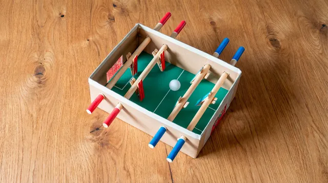 Construye tu propio futbolín con cajas y materiales reciclados, decóralo a tu gusto y compártelo con papá en un taller divertido para crear, jugar y celebrar juntos el Día del Padre. ¡Ideal para disfrutar en familia y echar los primeros partidos nada más terminar!