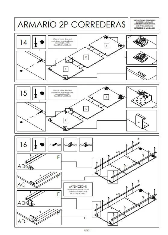 las medidas del armario son de 200x150x61,5 cm . el manuel de instalacion que viene es bastante escueto y poco preciso y el problema me llega a la hora de montar las guías y las puertas correderas, necesitaria más ayuda ya que es lo que me queda y no se de que forma hacerlo, gracias de antemano.