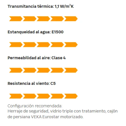 Hola @Bricolador2859390 , gracias por participar en el Foro de nuestra Comunidad. Atendiendo a tu consulta, trabajamos las ventanas a medida con perfil VEKA SOFTLINE 76 que tienen 5 cámaras de aislamiento, triple junta y refuerzo interior de acero cerrado. Se trata de un Perfil Clase A con certificado PassivHaus y triple acristalamiento. Para ello debes dirigirte a tu centro más cercano o bien llamar a venta a distancia y nuestros expertos te informarán más ampliamente y te podrán realizar un presupuesto orientativo a expensas de realizar una medición.