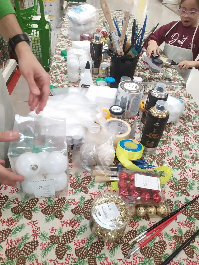 ¡Muy buenas a todos! El pasado sábado 25 de noviembre pasamos una mañana bastante creativa en Leroy Merlín Almería, y es que nos tocaba decorar y pintar nuestras viejas bolas de Navidad, darles una segunda vida. Nuestro compañero Javi nos ayudó en todo momento, ofreciendo ideas creativas para que cada uno nos llevásemos la bola ideal. ¡Muchas gracias, compi! Y... ¿cómo lo hicimos?