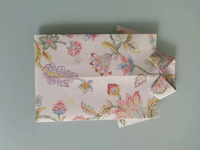 Para hacer la corbata utilizamos un cuadrado de 13*13. Lo doblamos haciendo un triángulo, y volvemos de nuevo a doblar los otros dos lados hacia el centro.