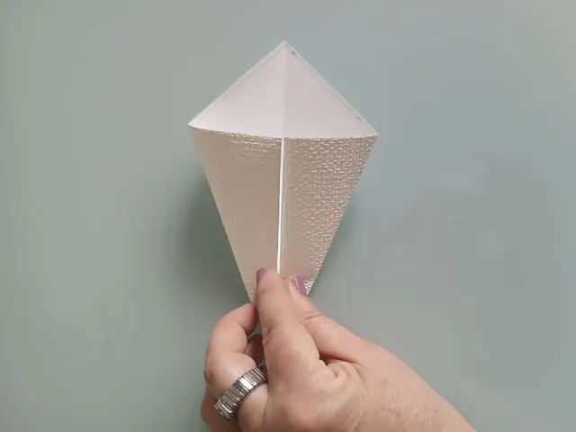 Para hacer las mangas doblamos por una de las esquinas y marcamos, y a continuación la otra esquina haciendo que coincida en el centro.