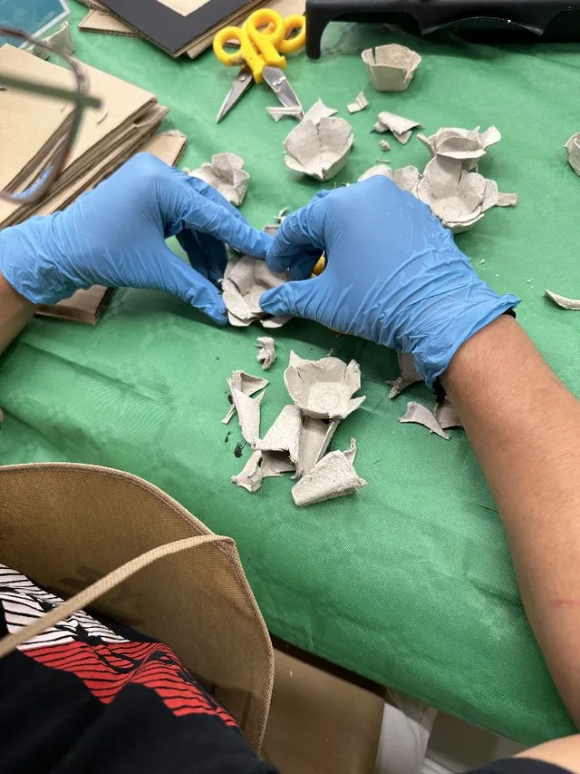y una gran paciencia haciendo las flores con las hueveras