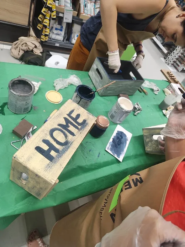 Los asistenten lijaron y pintaron las cajas de madera siguiendo las recomendaciones de nuestros expertos