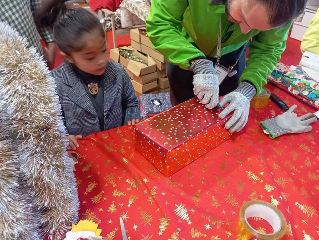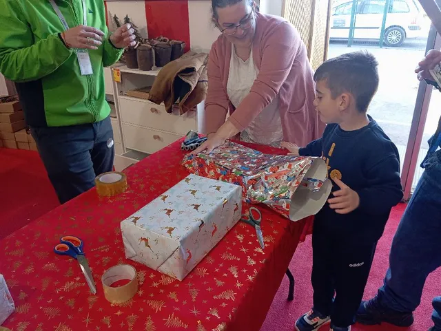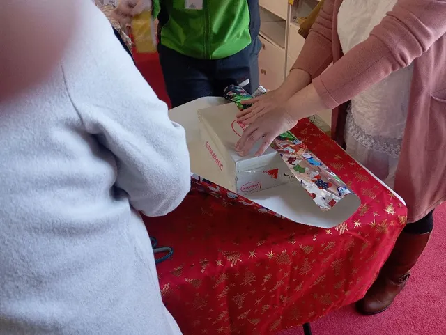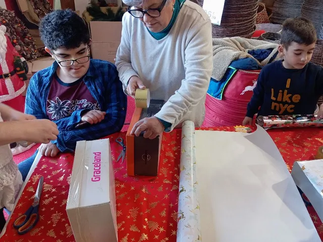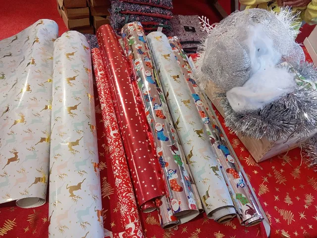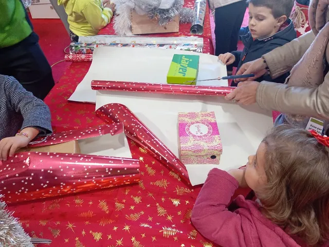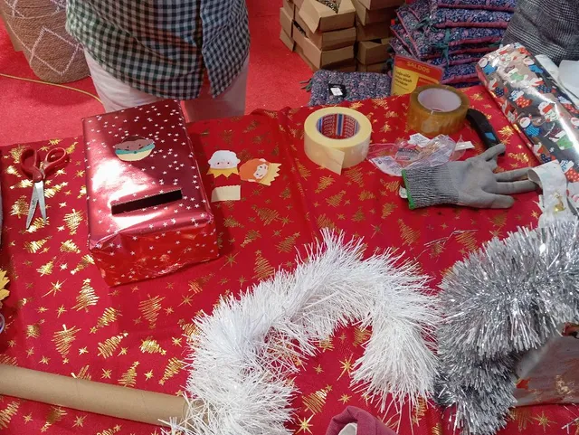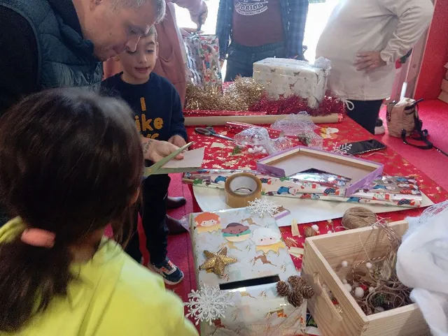 Vamos a realizar un buzón para la carta de Papá Noel y / o los Reyes Magos a partir de una caja reciclada. En primer lugar forraremos nuestra caja de zapatos o cereales con un bonito papel de regalo y la cubriremos en su totalidad.