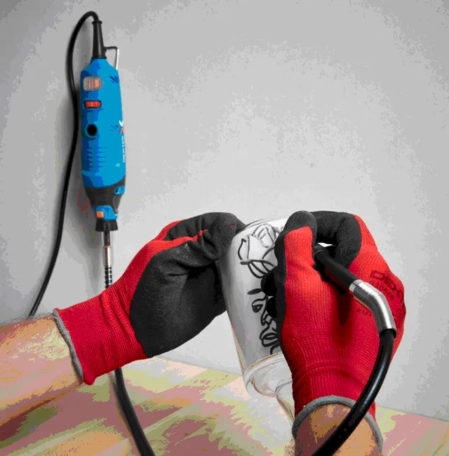 Las miniherramientas ofrecen un amplio abanico de posibilidades para realizar tareas de precisión, como grabar, lijar, cortar y dar forma a diversos materiales. Así, a través de técnicas creativas, los participantes pudieron transformar vasos viejos y desgastados en objetos únicos y atractivos. Esta práctica no solo les permitió darles un nuevo estilo, sino también contribuir al objetivo de prolongar la vida útil de los objetos en lugar de desecharlos prematuramente.