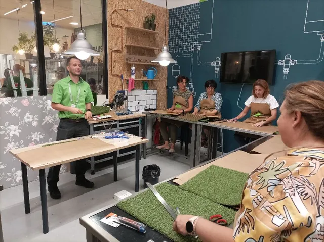 Nuestro compañero Brais pudo enseñar a nuetro asistentes como reutilizar los retales de césped artificial para crear objetos interesantes y usables en el día a día, los asistentes quedaron encantados con el resultado.