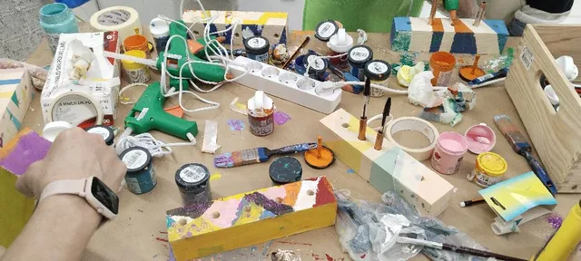 En este caso realizamos un portalápices con un listón cepillado, el cual perfoamos para insertar tubos de cobre que posteriormente sujetarían los lápices, después llegó el momento de echaarle imaginación y pintarlo de la manera más original.