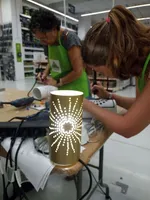 2- Despues con una plantilla que cada cliente eligio plasmamos la decoracion en el tubo utilizando la mini herramienta Dexter.