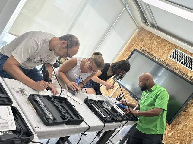 Utilizando una amoladora, cada uno de los asistentes tuvieron la oportunidad de personalizar sus tablas. Algunos optaron por añadir letras, mientras que otros dejaron volar su imaginación con diseños únicos.