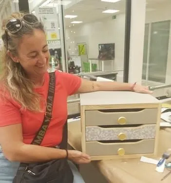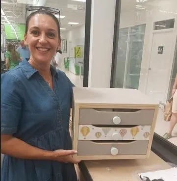 El pasado Sábado 23 de Septiembre, tuvimos nuestro taller ordenar y decorar donde hicimos de una simple cajonera de madera, una cajonera con papel y color, donde nuestros usuarios disfrutaron mucho.
