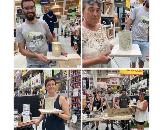 Durante el taller vieron todas las posibilidades y opciones de las mini herramientas, y aparte de ofrecerles toda la información y resolver dudas, Rafa les ayudó a crear un portalámparas.