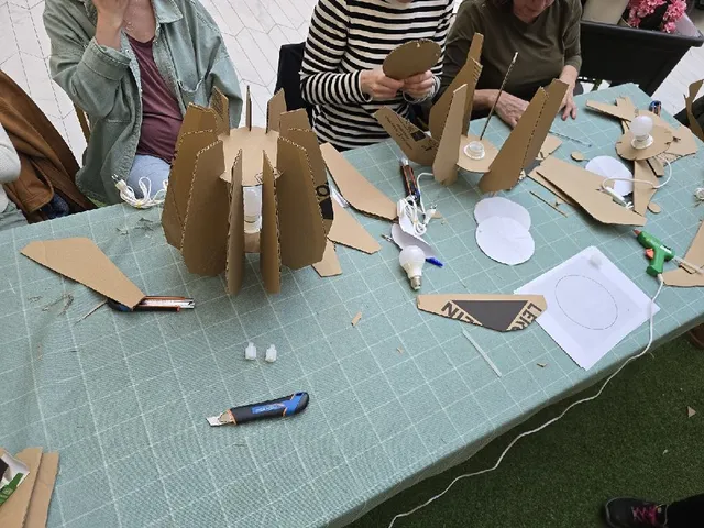 Volvemos para dejaros unas foto del magnifico taller que realizamos ayer viernes 19 de abril en la galeria del centro comercial Valle Real "Crea tu lampara con cartón reciclado"