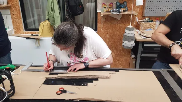 Paso 1. Medir las piezas de cartón al gusto, señalar y cortar, siempre con las medidas de protección necesarias, como son los guantes para cortar con cuter.
