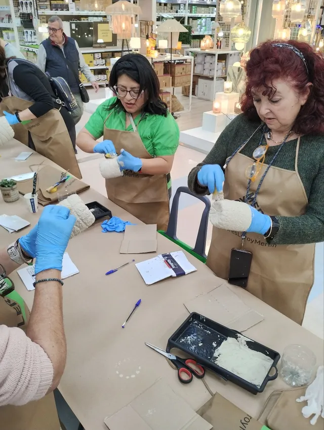 3° cuando está seca la primera capa, mezclamos la pintura con la arena y la ponemos por la superficie