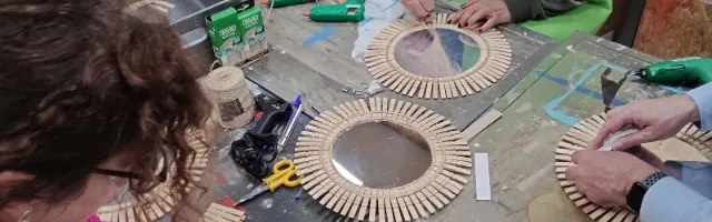 Los asistentes se llevaron a casa espejos renovados y únicos, utilizando materiales reciclados como pinzas de ropa. ¡Vimos cómo cada uno aportó su toque personal y se dejó llevar por la inspiración para crear piezas de decoración modernas y originales!