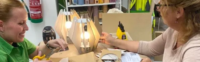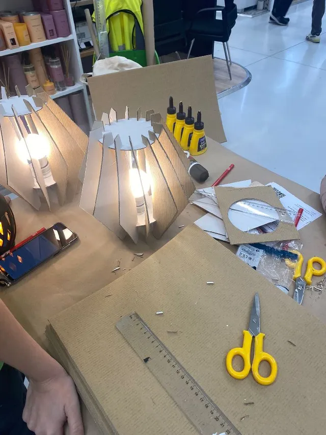 El pasado día 23 de marzo tuvo lugar en nuestra tienda de Torrevieja, el taller Diseña tu lampara con carton y bombillas recicladas.