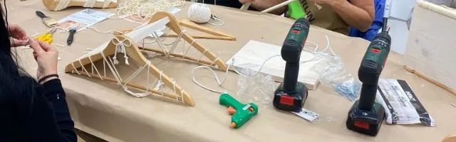 El pasado día 24 de Febrero tuvo lugar en nuestra tienda de Torrevieja, el taller hack: diseña un mueble con perchas que no uses. En este caso, se realizó una **bandeja de sofá. **