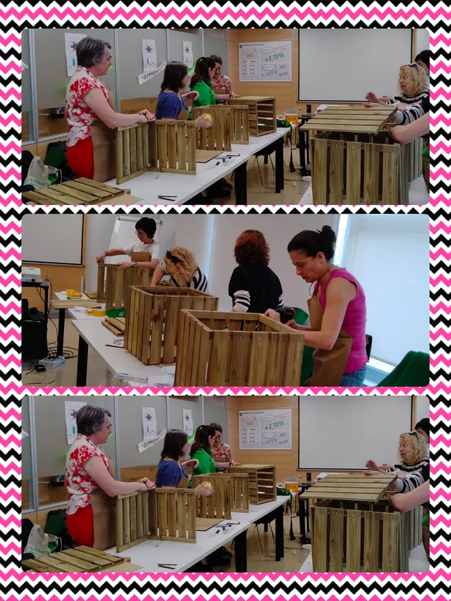 Además, compartimos trucos para trabajar mejor las juntas, encajar las piezas y adaptar el diseño a los gustos de cada uno. El ambiente fue genial y disfrutamos mucho viendo cómo cada participante daba forma a su mueble con ilusión y creatividad.