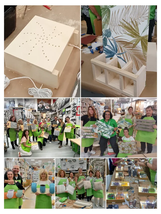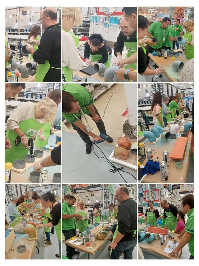 ✨ El pasado viernes 13 de septiembre vivimos una noche mágica en Leroy Merlin Mijas ✨ Tuvimos el placer de celebrar nuestra esperada Noche de los Talleres, una velada inolvidable en la que tanto talleristas como clientes disfrutaron al máximo. Fue un momento único de creatividad y aprendizaje compartido, donde todos pusimos manos a la obra y lo pasamos en grande. ✨ Taller de tapizado sin costura: Dale un toque único a tu entrada ✨ En nuestra Noche de los Talleres también nos divertimos creando proyectos sencillos pero con mucho estilo. Uno de los más originales fue el taller de "Tapiza un tablero sin costura", donde aprendimos a transformar un simple tablero de aglomerado en un elegante elemento decorativo, ¡perfecto para darle un toque especial a la entrada de tu casa! 🏡