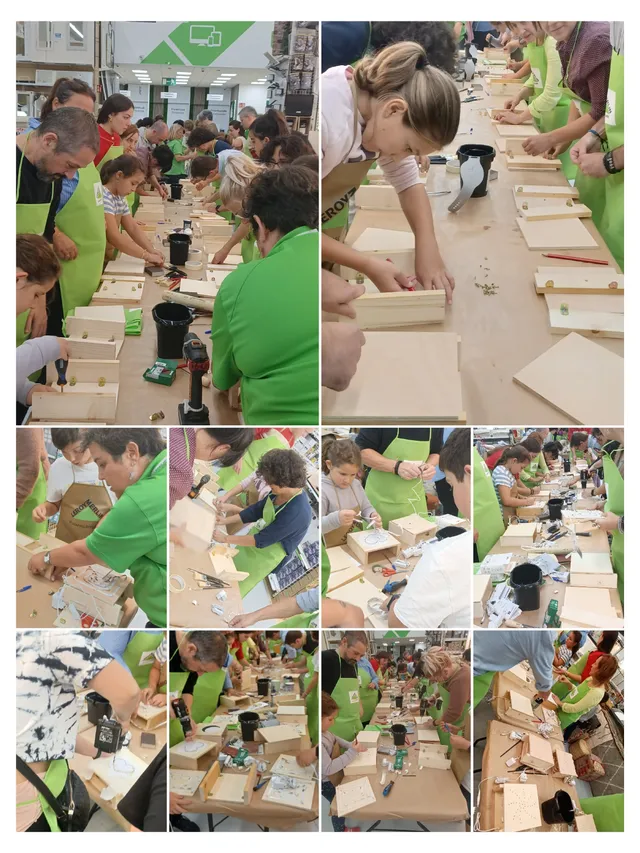 ✨ El pasado viernes 13 de septiembre vivimos una noche mágica en Leroy Merlin Mijas ✨ Tuvimos el placer de celebrar nuestra esperada Noche de los Talleres, una velada inolvidable en la que tanto talleristas como clientes disfrutaron al máximo. Fue un momento único de creatividad y aprendizaje compartido, donde todos pusimos manos a la obra y lo pasamos en grande. ✨ Taller de crea tu casa nido para pájaros: Dale un toque único a tu jardin ✨ En nuestra Noche de los Talleres también nos divertimos creando proyectos sencillos pero con mucho estilo. Uno de ellos fue el taller de "Crea tu casa nido para pájaros", donde aprendimos a transformar unas tablas de madera en un elegante elemento decorativo y con una gran utilidad, ¡perfecto para darle un toque especial al jardin de tu casa y para que tus pajaros se resguarden del frio! 🏡