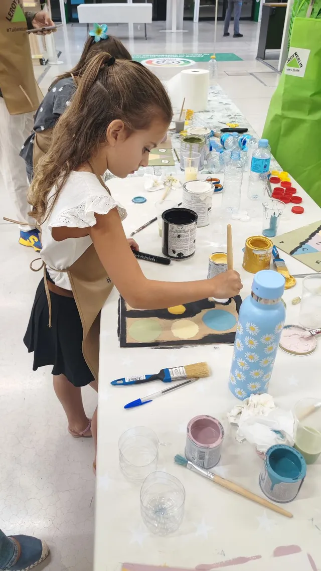 En Almería, hicimos 6 talleres de los propuestos: 1.- Tablero de juego de mesa - Infantil. 2.- Juguete para ejercitar el pensamiento - Infantil. 3.- Manteles individuales con textiles sobrantes de decoración - Adultos. 4.- Letreros LED - Familiar. 5.- Crea tu propio terrario - Familiar. 6.- Pinta una encimera o mueble con la técnica del mármol falso - Familiar.