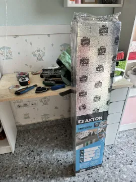 Quitamos el cajón con los dos tornillos laterales, limpiamos tanto la tapa como la parte superior interno con un papel y alcohol, para que el adhesivo no tenga problemas, a continuación una vez desmontado medimos el aislante necesario, cortamos con la ayuda de una cuchilla el aislante , una vez que hemos medido el cajón, le echamos a la tapa del cajón spray adhesivo y pegamos el aislante encima del spray, volvemos a poner la tapa con el aislante ya puesto al cajón, y cerramos con los tornillos.