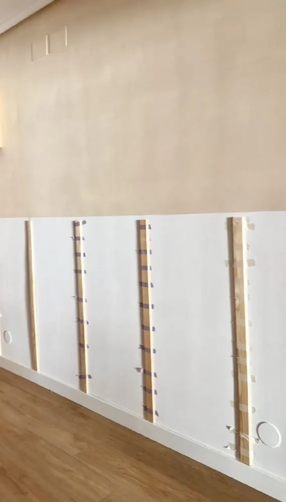 3º) He colocado cada listón con una separación de 52 cm, aunque esto dependerá del ancho total de la pared y de tu gusto, si los quieres más juntos.