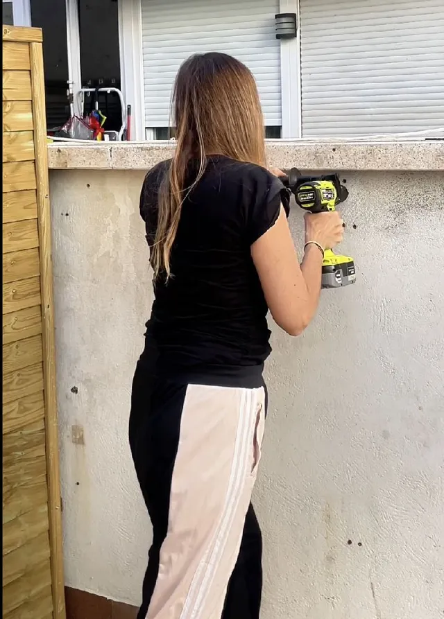 Para los rastreles, hemos cogido unas picas de madera maciza tratadas para exterior, y para realizar los agujeros a la pared hemos utilizado brocha y tacos del 8.