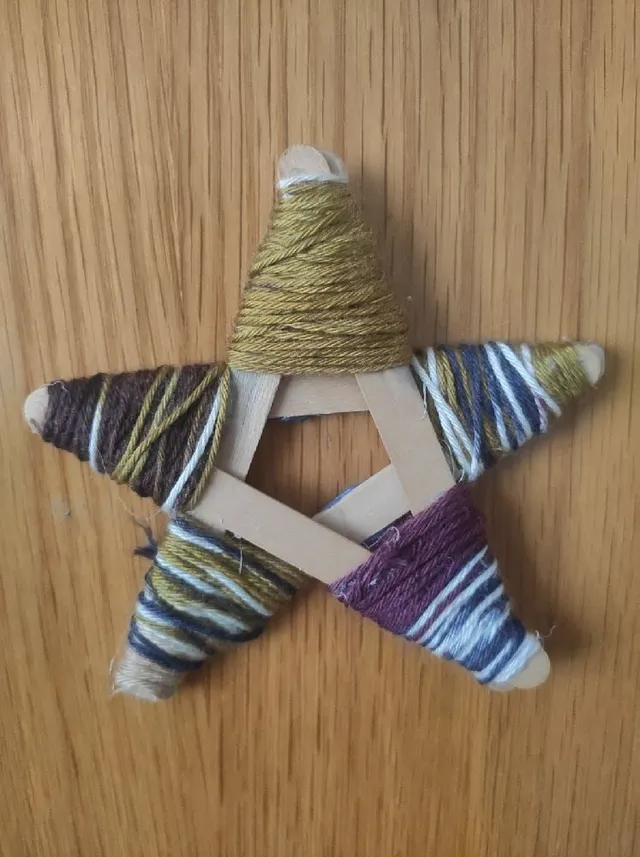 También hice la estrella final con lana y cartón y otras con palitos de helado que puse otros años.