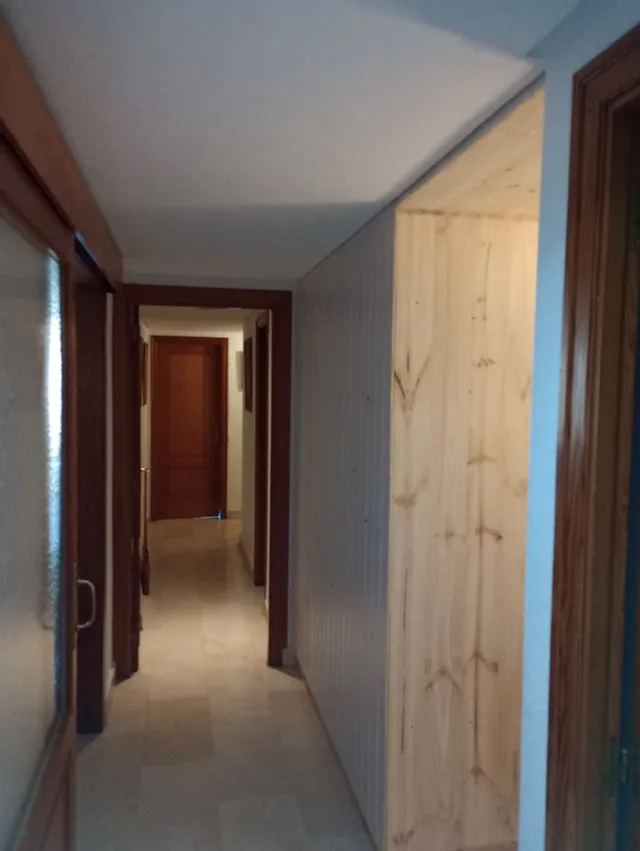 Hemos convertido una estancia abierta al pasillo en una habitación realizando un armario vestidor como cerramiento de la pared.