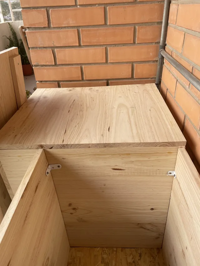 Con tres gatos es casa necesitaba una solucion para los areneros y sacos de arena, por lo que opte por crear un banco para ocultarlo y poder usar para aprovechar la terraza