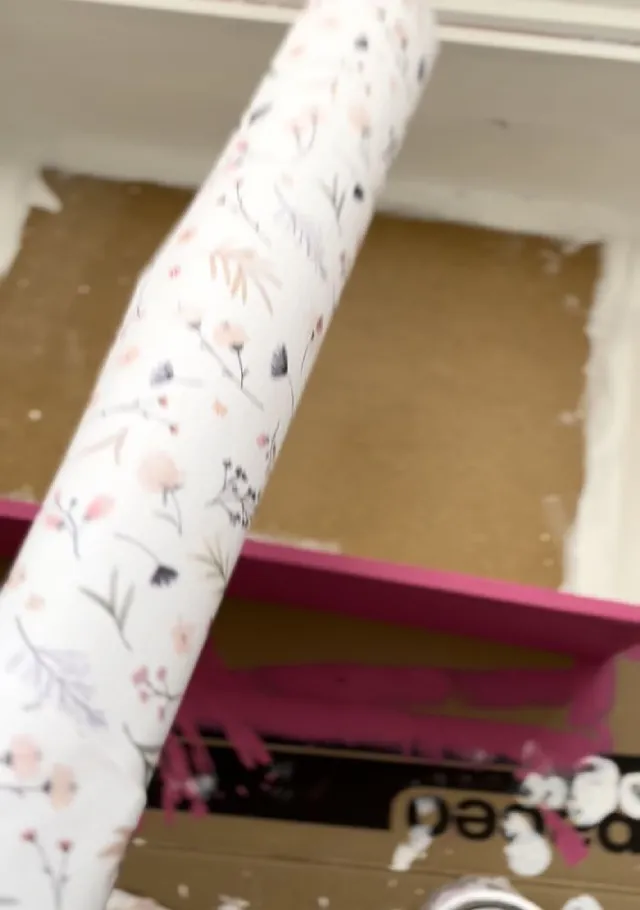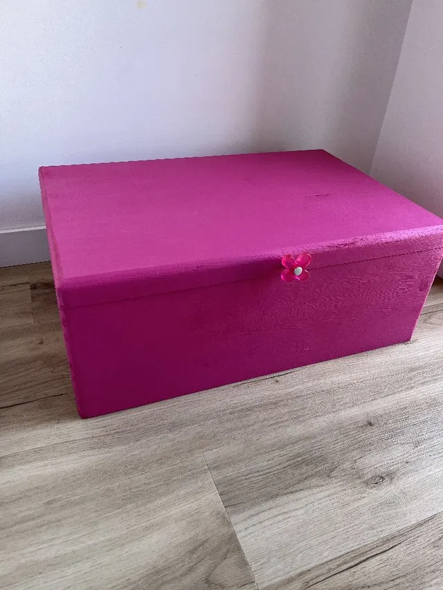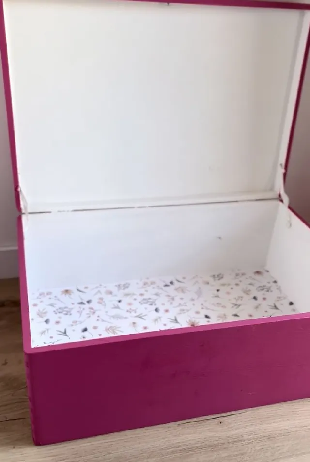Quería subir un vídeo, pero no me deja, pinté de rosa por fuera y por dentro de la tapa pinté de blanco y en la base añadí vinilo.