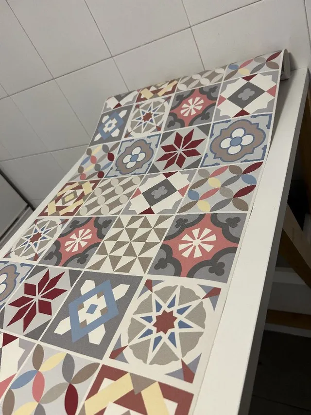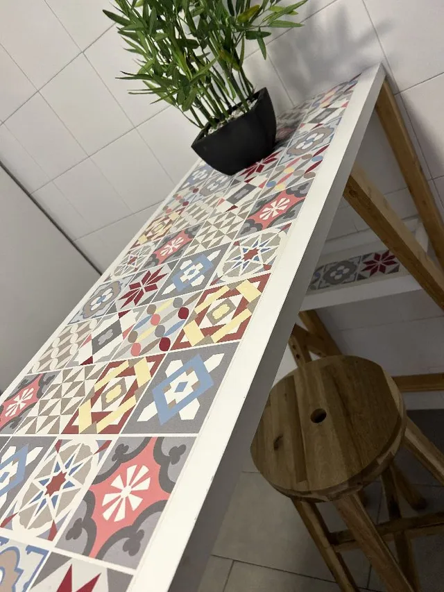 Paso 3: ¡Es hora de brillar! Coloca el vinilo adhesivo seleccionado sobre la mesa. Su fácil aplicación te sorprenderá.