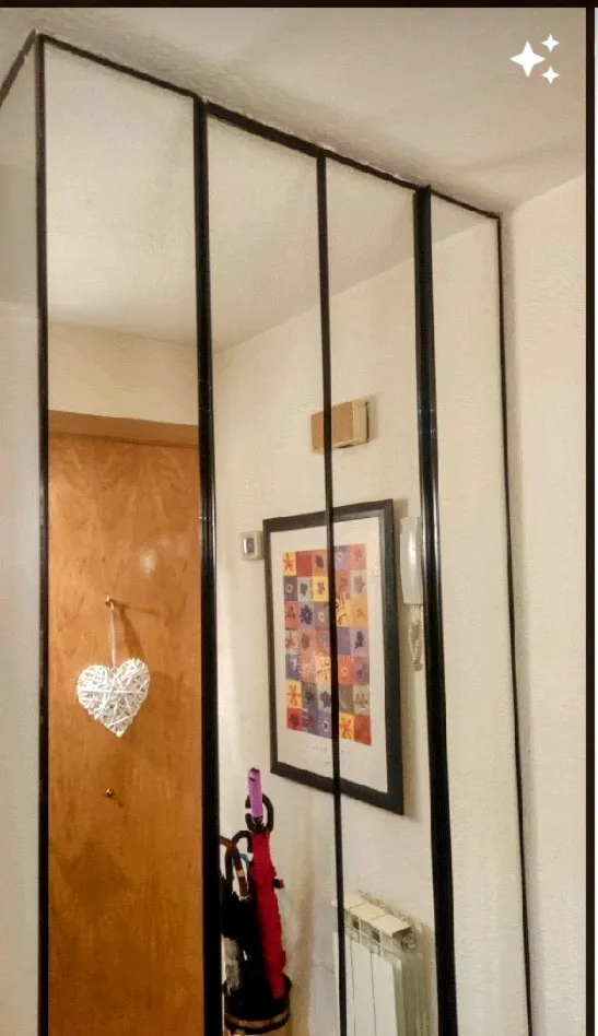 Ttenía un armario en negro y cristal con puertas tipo fuelle que ya no se fabrican. Asi que buscando soluciones, encontré esta que me gusta mucho y es muy sencilla. se trata de forrar con papel vinilo los marcos del armario. Por último le pegué unos bordes también con vinilo blanco para simular espejos en forma de cuadros que está muy de moda. Ya hace más de 2 años que lo hice y el armario que es de mucho uso está impecable Os gusta el resultado?