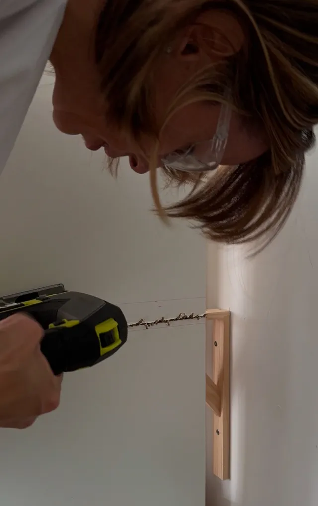 En el lado de la pared, he puesto unos listones de madera con taco y tornillo a la pared.