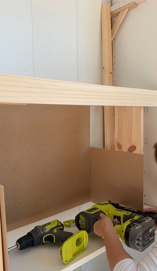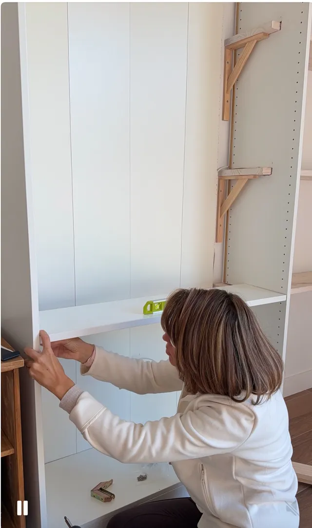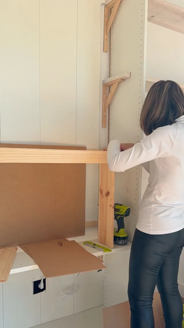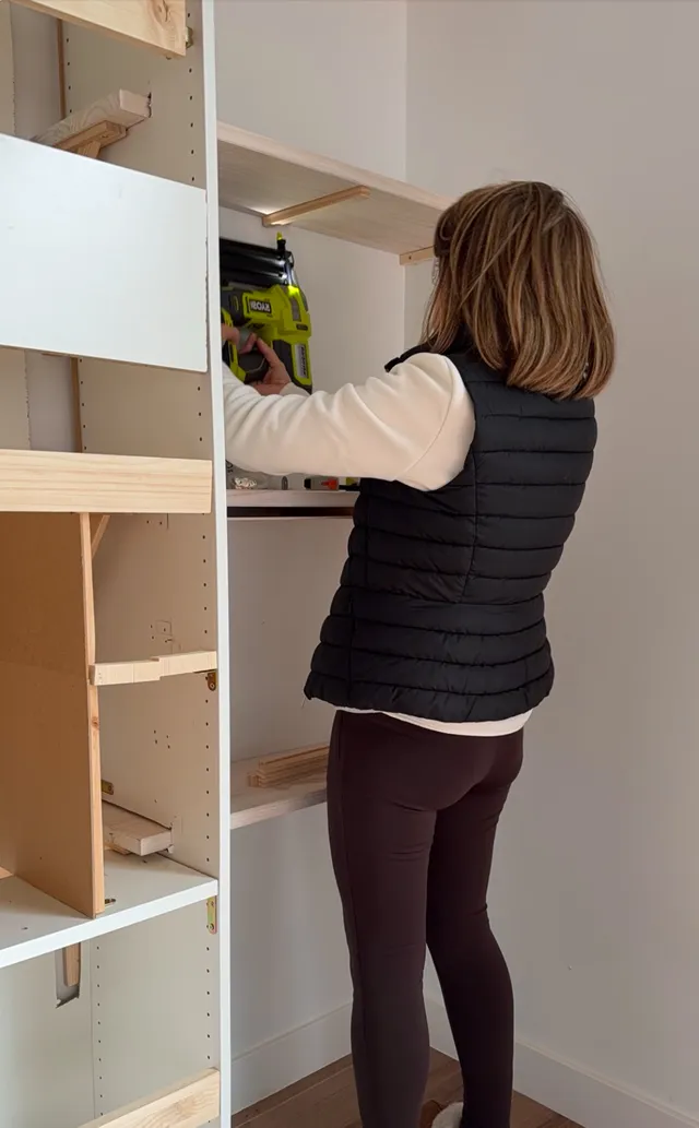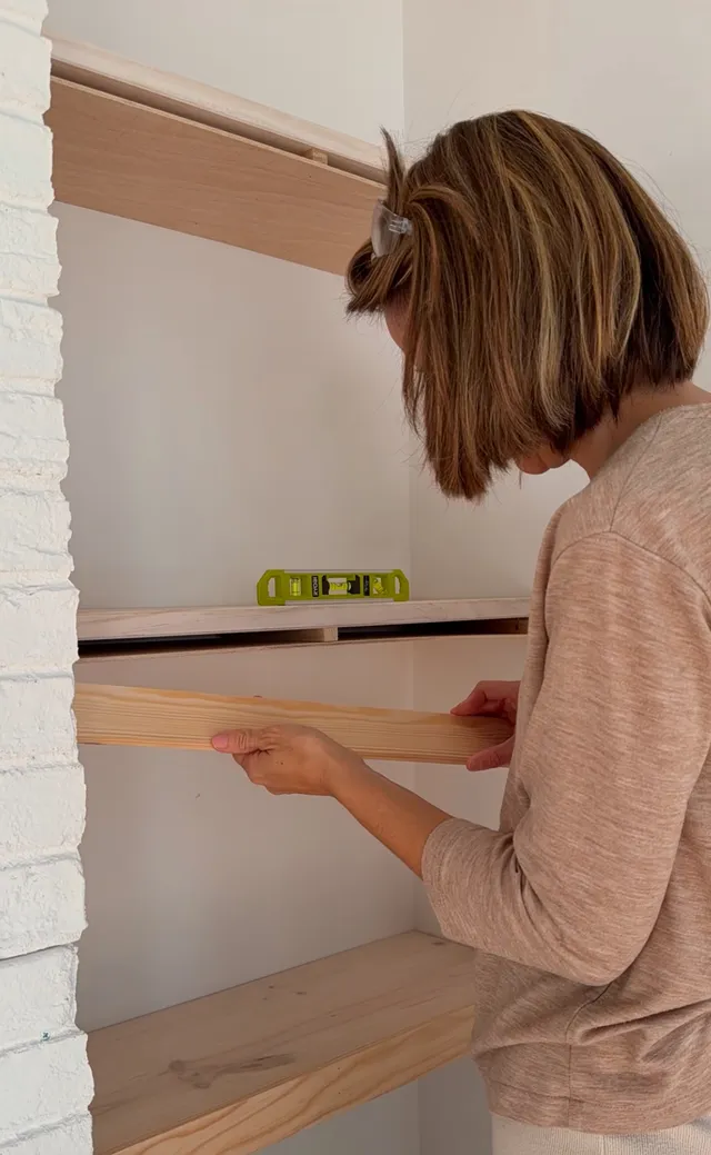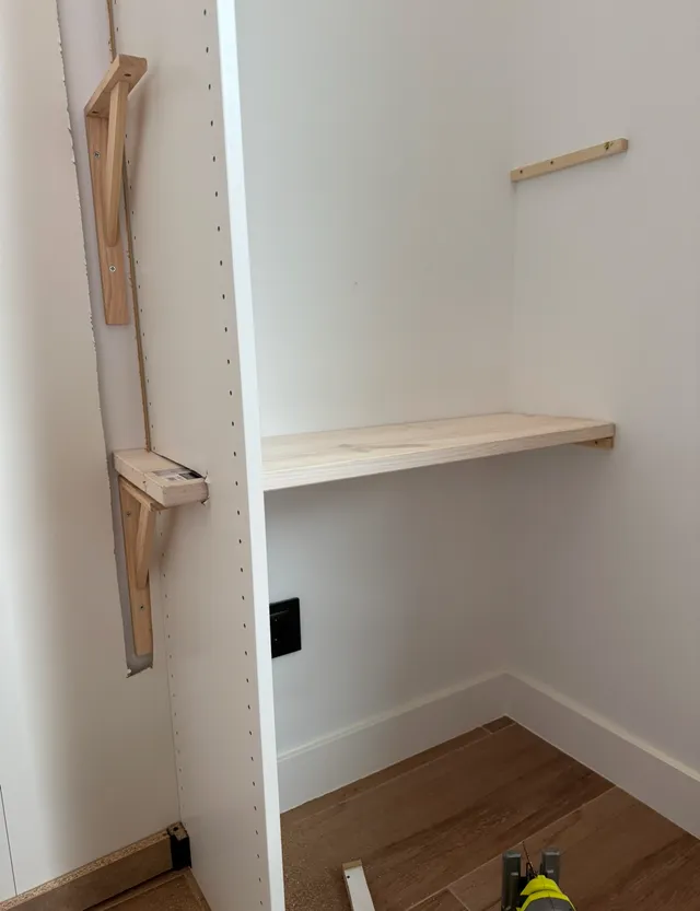 Y vamos a rematar las baldas para que queden mas gruesas y mas bonitas. Le pongo unos listones para dejar oculto el que va en la pared.