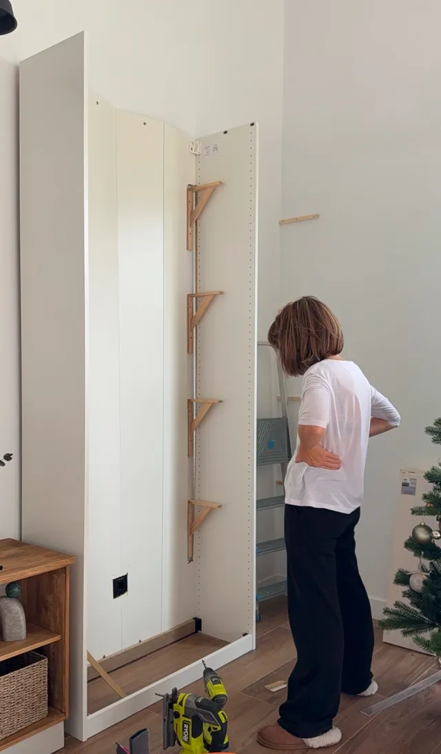 Y para la chimenea, lo primero que hago es poner una estructura de armario. Esa va a ser la base para todo lo demas, asi me aseguro que lo hago recto y bien sujeto a la pared.