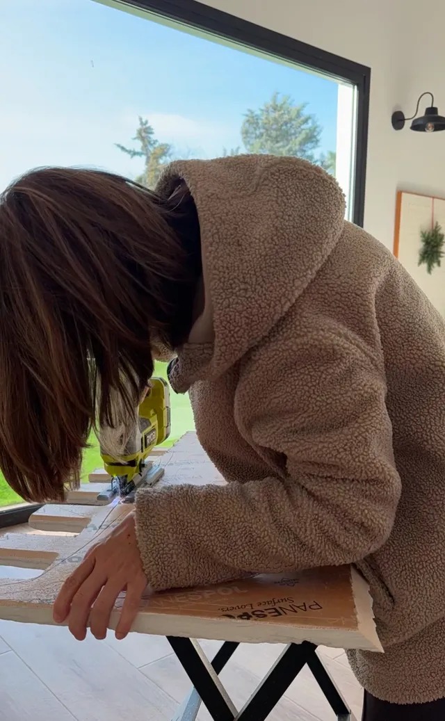 Y con unos tableros de madera muy finitos los pongo debajo para que tenga tanto la parte de arriba como la de abajo similar. Luego teñire todo mas oscuro y quedara unificado.