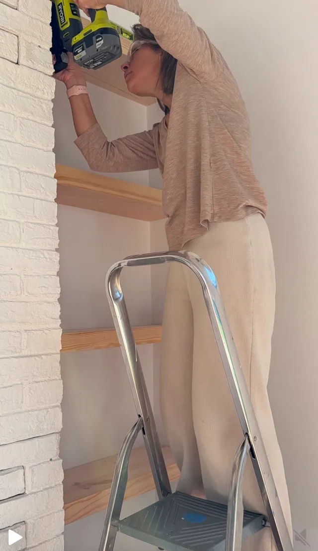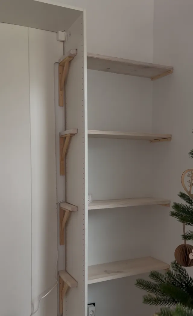 El proyecto ademas de la chimenea incluye unas baldas al lado derecho. Queria tener unos estantes para poner algo de decoración. Pero quería que no se vieran los soportes, asi que os enseño como he ido haciendo para que queden ocultos.