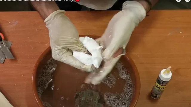 Proceso de Creación del Molde En un recipiente amplio y limpio, agrega agua y una generosa cantidad de lavavajillas (en este caso, usaremos Fairy). Mezcla bien para asegurar una distribución uniforme. Usa guantes protectores y mezcla la silicona dentro del agua lentamente para que se compacte de manera efectiva.