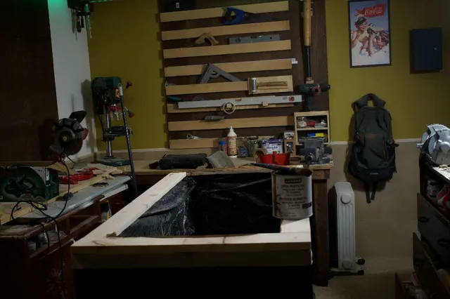 Lo siguiente era el relleno para eso con las tablas de madera las corte a unos 53 cm con cola de carpintero y clavos lo fui clavando rellenado todo el espacio .