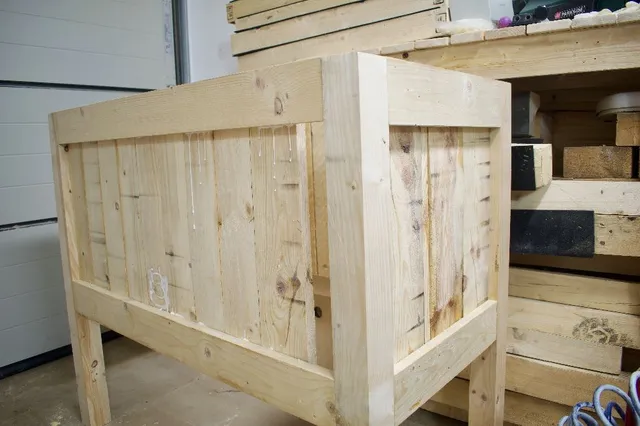 NOTA: esto es super importante para un volumen de 417 litros más las plantas, el agua, todo ese espacio lo soporta el peso de la base, por eso es muy importante colocar tornillos y listones de 3 cm para que soporte todo ese peso. Si veis que cede los listones colocarle un refuerzo de madera en la parte baja.