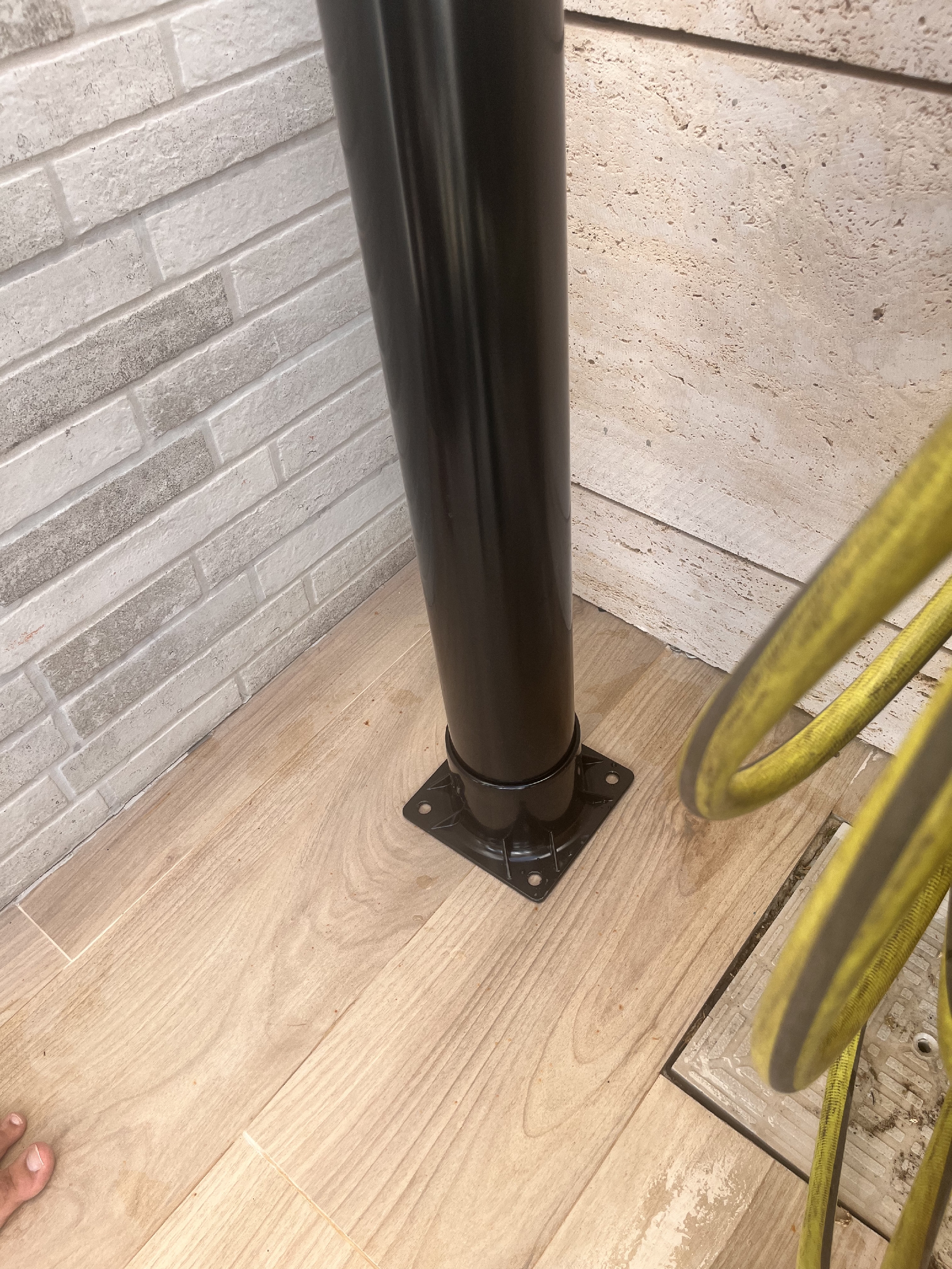 Para instalarlo es muy sencillo pon la base marcarlo y despues con una broca taladra, por cierto como mi caso la plaqueta era dura me tire como 4 horas intentando hacer los agujeros es la única parte complicada porque todo lo demás es super sencillo, una vez que teníamos los 4 agujeros era colocar la ducha y ponerle los 4 tacos metálicas , estos tacos no necesitan ni taco químico ni nada lo único es darle con un martillo para que entre y apretar con una llave inglesa para que haga el efecto de mariposa o abrazadera ( para que entiendas por dentro se abre y asi no se sale.
