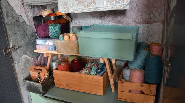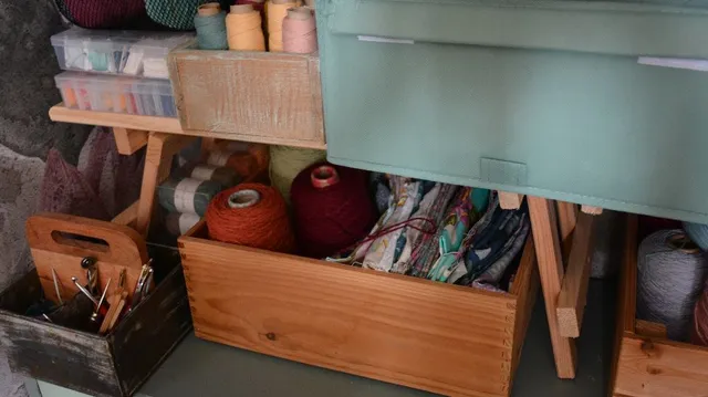 Y una vez que está pintado y decorado puedes combinar el uso de cajas de madera y tela para poner orden dentro.