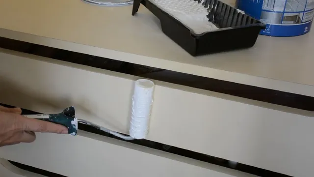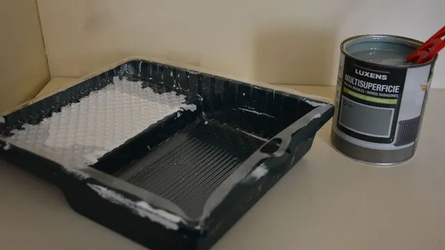 Comenzamos con el cambio de color porque siempre es recomendable pintar antes de colocar el papel pintado. Para mejorar la adherencia de la melamina podemos lijar, aunque sea ligeramente, y aplicar la imprimación de color blanco.