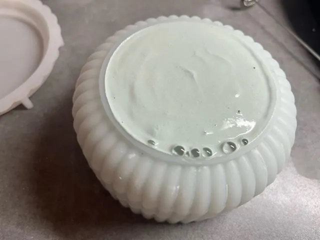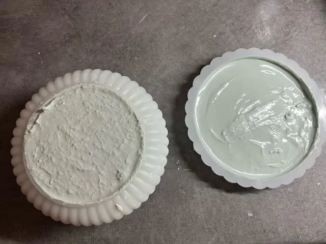 Una vez tenemos la mezcla a punto, la vertemos en el molde de silicona que hayamos elegido. Para sacar el aire que pueda quedar, le vamos dando golpes contra una superficie y dejamos secar toda la noche.
